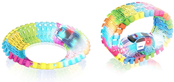 - Luces y sonidos: Cada vehículo está equipado con luces brillantes y efectos de sonido para aumentar la emoción en cada carrera, haciendo que cada vuelta sea más divertida e interactiva. Ilumina tus pistas regulares o Neon Glow, observa cómo el brillo en las pistas oscuras se activa con las luces negras.